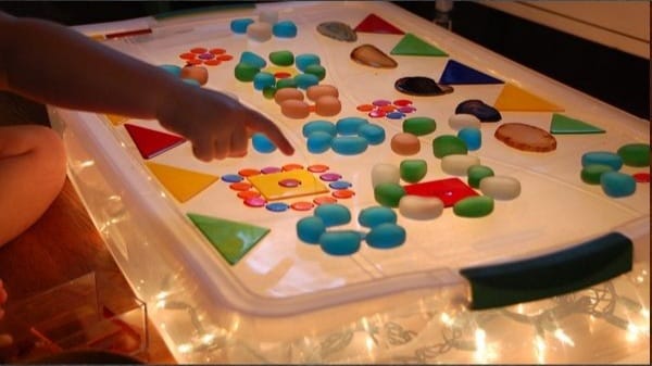 A mesa de luz é um destes materiais, pois a sua superfície iluminada atrai a atenção das crianças e provoca altos níveis de concentração. A aprendizagem desenvolve-se através da manipulação de diferentes materiais sobre a mesa, como tintas, objetos translúcidos (existem atualmente no mercado português abecedários, numerários, formas geométricas, blocos sensoriais e peças de encaixe), papel translúcido colorido, areia, terra, espelhos, entre vários outros.